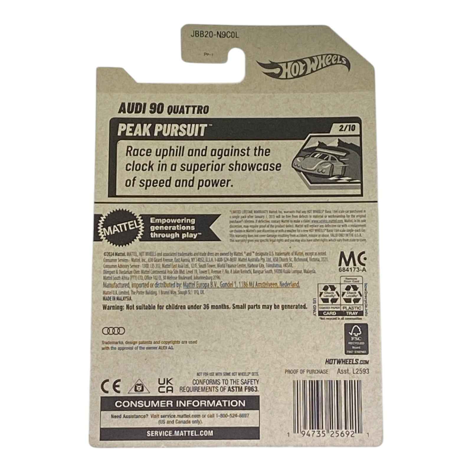 Ignite your collection with the Hot Wheels Audi 90 Quattro from the Peak Pursuit Series 2/10! This dynamic die-cast model captures the iconic design and rally-inspired spirit of the legendary Audi 90 Quattro. Perfect for collectors and car enthusiasts, its bold finish, intricate detailing, and authentic decals make it a standout piece. Add this thrilling replica to your Hot Wheels lineup and celebrate the legacy of Audi’s performance prowess!