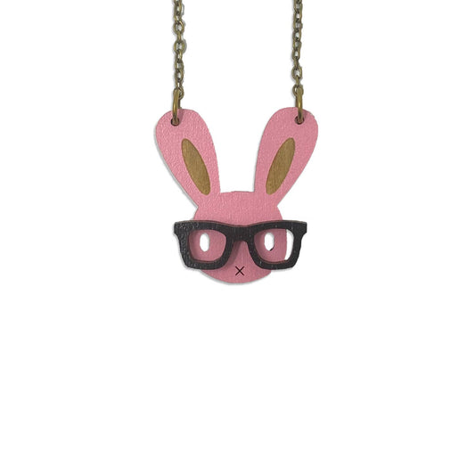 Nerd Bunny Necklace - Soft Pink