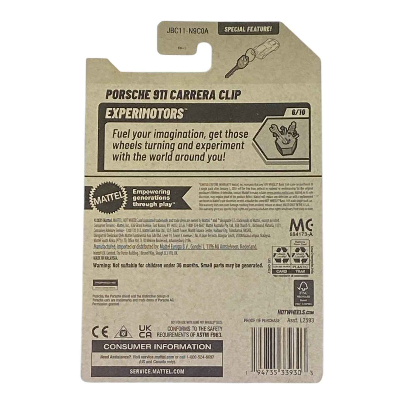 Accelerate your collection with the blue Hot Wheels Porsche 911 Carrera Clip from the Experimotors Series 6/10! This 1:64 scale die-cast model embodies the sleek, iconic design of the Porsche 911 Carrera, finished in a stunning blue hue. With intricate detailing, vibrant graphics, and a unique clip feature, it’s perfect for collectors and kids who love high-speed style. Built for play or display, this Hot Wheels masterpiece captures the essence of Porsche performance. Don’t miss this Experimotors gem—add the Porsche 911 Carrera Clip to your lineup today!